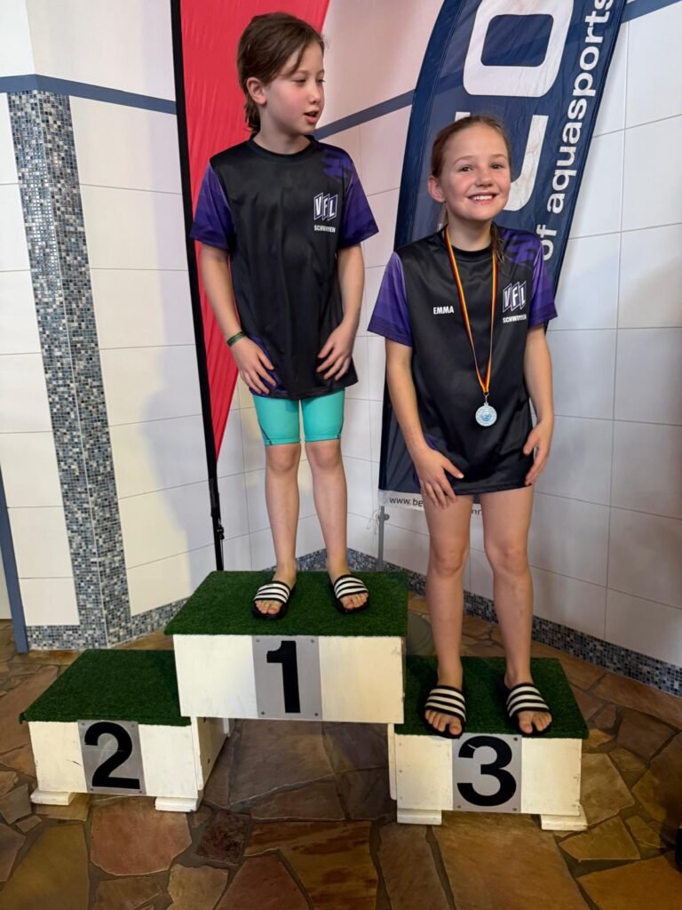 Ein besonderes Highlight an diesem Wochenende war für Trainerin Anne der Start über die anspruchsvollen 200 m Lagen, eine Strecke, die einige der Lila-Weißen erstmals im Wettkampf schwammen. Insgesamt war es ein rundum gelungenes Wettkampfwochenende mit vielen Bestzeiten, Podestplätzen und strahlenden Gesichtern. Wir danken allen Kampfrichterinnen und Kampfrichtern.