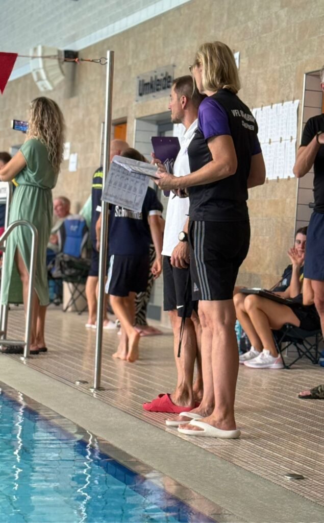 Begleitet wurde die Mannschaft von den Trainer*innen Anne und Dušan, die ihre Schützlinge mit viel Engagement betreuten, motivierten und am Beckenrand kräftig anfeuerten. Ihr Einsatz trug entscheidend dazu bei, dass die Kinder an diesem Tag ihre Leistungen erfolgreich abrufen konnten und die im Training so intensiv geübten Rollwenden und Atemtechniken auch im Wettkampf zeigten.