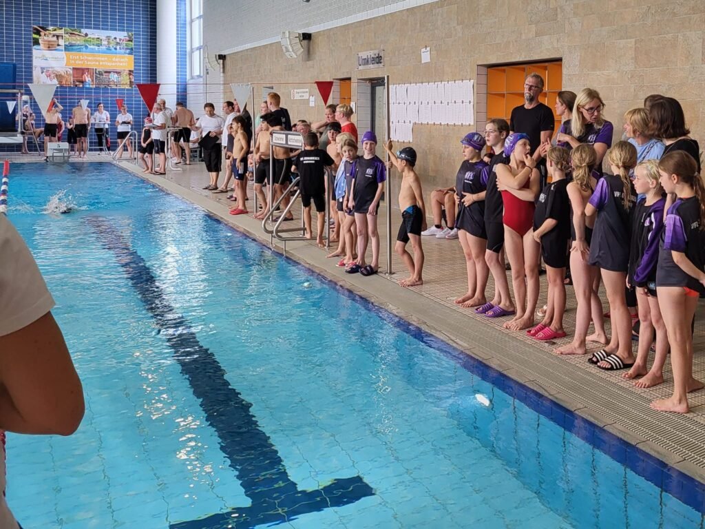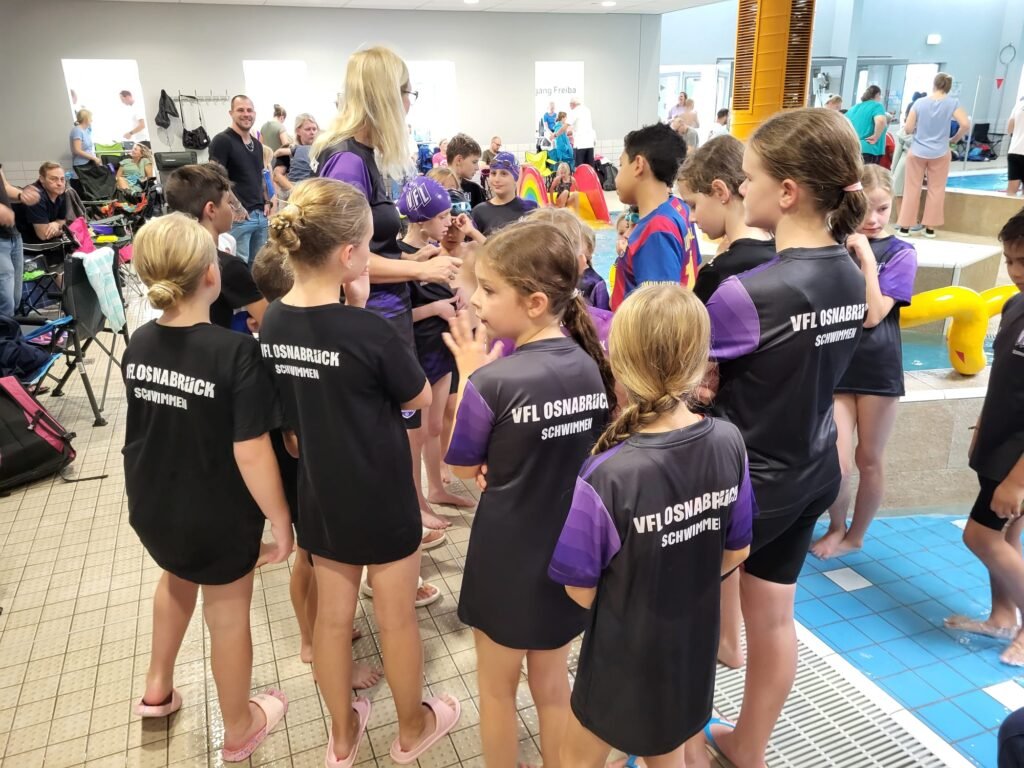 Mit einer großen Mannschaft aus den Gruppen GA, GLT 1 und 2 trat der VfL Osnabrück am 14.09.2025 beim diesjährigen Teutoburger Waldschwimmfest in Georgsmarienhütte an. Für viele unserer jungen Athlet*innen war es einer der ersten größeren Wettkämpfe – entsprechend groß war die Aufregung. Am Ende überwog jedoch die Freude über starke Leistungen, persönliche Bestzeiten und jede Menge Teamgeist.